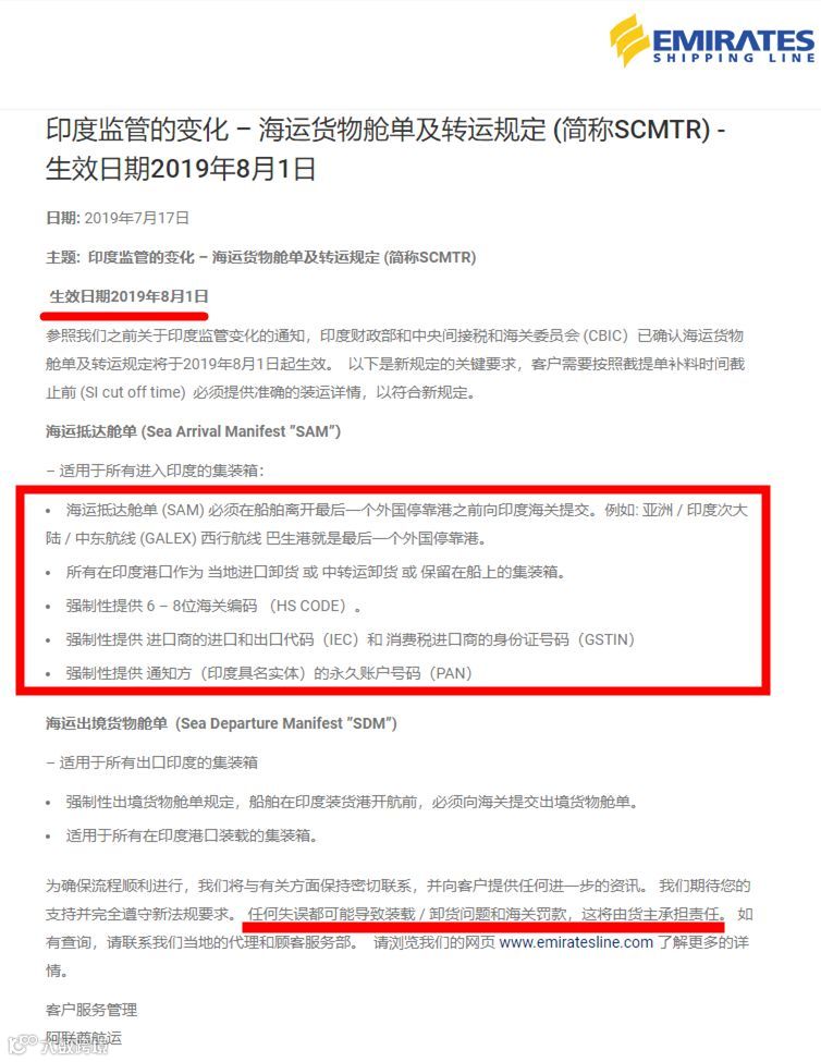 目前,各大船公司已发布紧急通知,如不按照新规提供信息,将会发生无法装卸柜、清关或者产生罚金等严重后果,且费用由托运人承担!