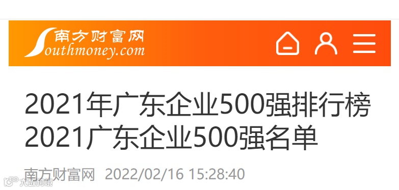 2021“广东企业500强”由广东省企业联合会、广东省企业家协会组织评选,旨为贯彻《中共中央国务院关于营造企业家健康成长环境弘扬优秀企业家精神更好发挥企业家作用的意见》,加快广东省构建推动经济高质量发展的体制机制,支持省内大型骨干企业高质量发展。