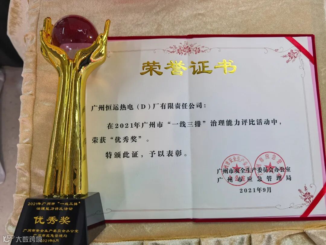 近期,广州市安全生产委员会办公室、广州市应急管理局联合开展2021年广州市“一线三排”治理能力评比活动,发电公司“恒运热电行舟队”代表公司参评,荣获优秀奖。此次活动面向广州市安委会成员单位、各区安委办、全市范围内企业。