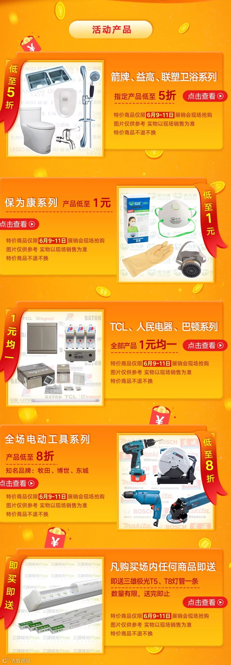 惊喜1:海量精选货品,现场大促销