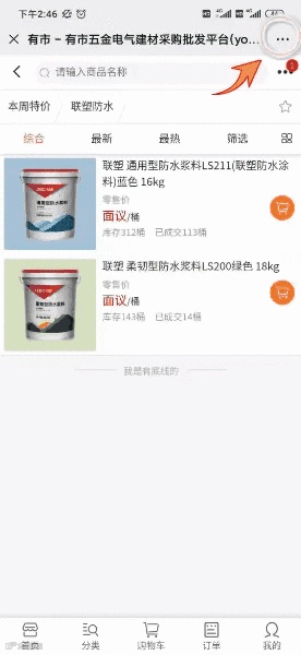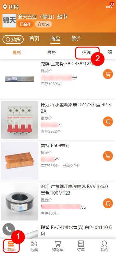 1. 进入产品列表,客户可通过首页按钮进入或者通过搜索产品进入,也可以通过商品分类进入到产品列表,点击上方的【筛选】按钮,如图