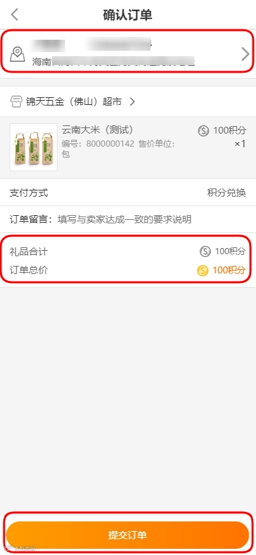 可选择满足兑换条件的礼品进行兑换,提交礼品订单。