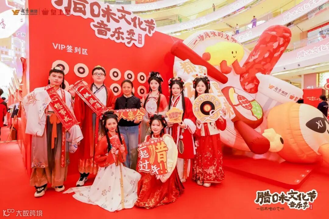 本次活动还精心准备了各式年货摊位,遍布腊味文化街、国风美食街、美食手信街、国潮风尚街。从多样腊味、传统非遗美食、特色手信、食饮到充满趣味的国风互动游戏、汉服秀,琳琅满目,丰富多彩,让观众朋友们的味觉、视觉得到充分满足,近距离感受到老字号品牌与传统文化的双重魅力。