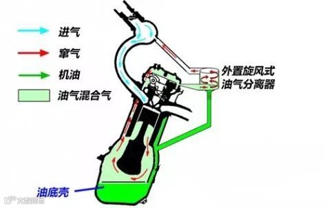 3、保持曲轴箱内压力与大气基本相等,减少机油泄漏。由于发动机工作时曲轴箱内温度升高,气体膨胀,再加上窜人曲轴箱内的高温高压燃气,使曲轴箱内压力升高,机油会从各结合面及油封处发生泄漏。同时曲轴箱内压力升高,会增加活塞下行时的阻力,膨胀作功和吸气行程的功率损失增大,降低发动机的输出功率。安装上油气分离器后,可将曲轴箱内的高温压力气体排出,平衡曲轴箱内外的压力。