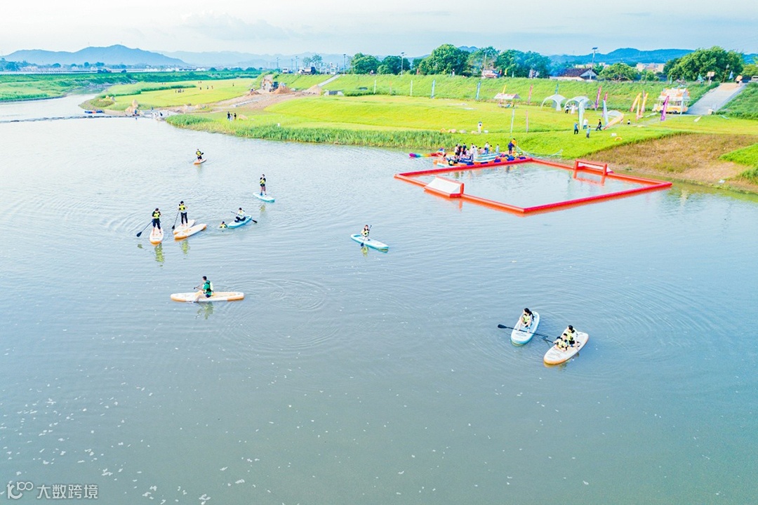 治理优化后的潖江河堤成为露营休闲、水上运动景点。