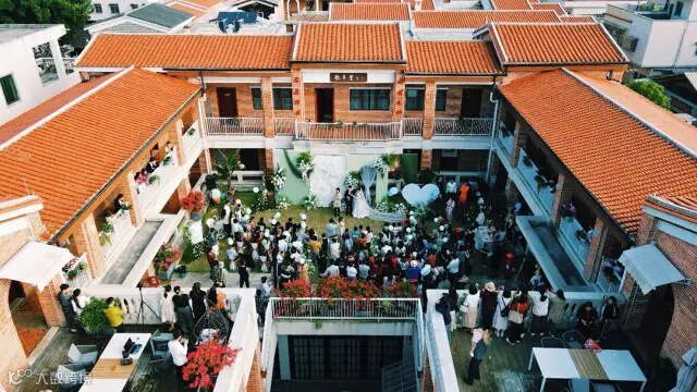 新人在甜蜜小镇登记结婚举办婚礼。