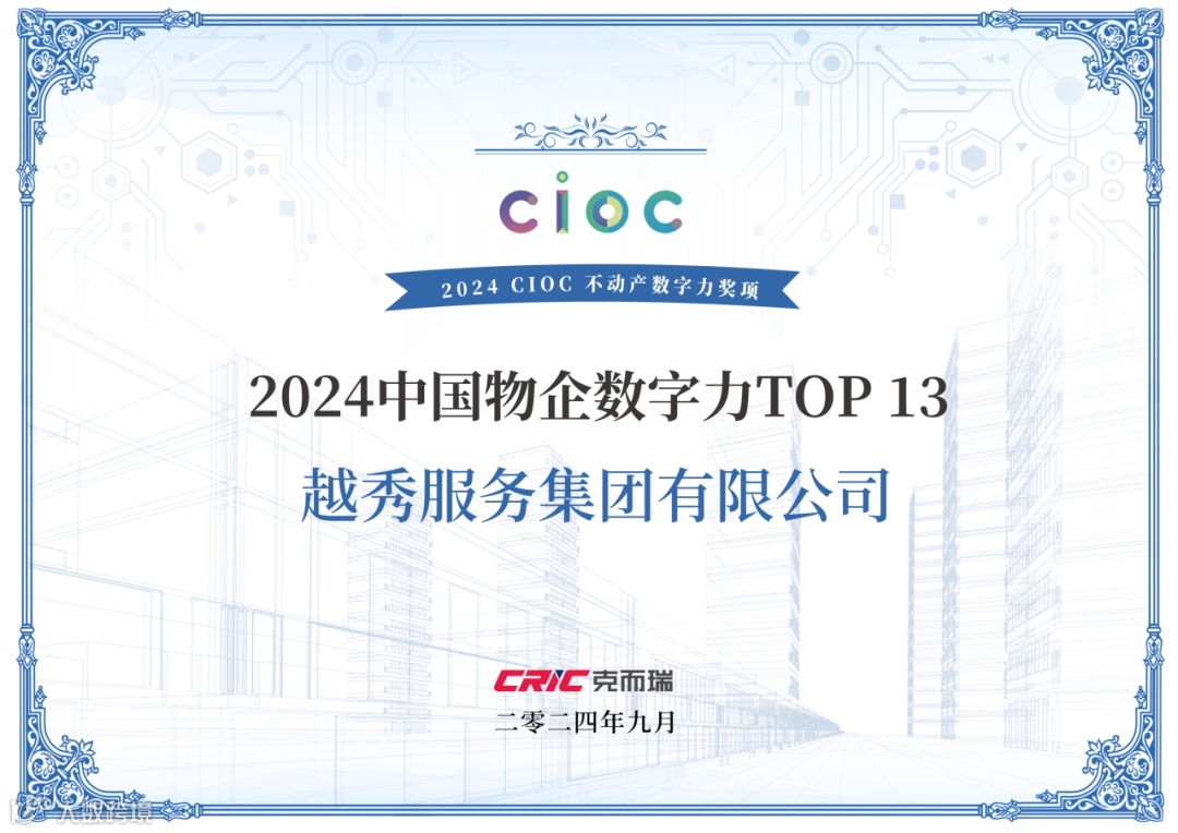 9月3日,在2024CIOC不动产数字化峰会上,备受行业关注的“克而瑞房企数字力榜单”正式公布。凭借在地产数字化领域的精耕细作与优秀实践,越秀地产摘得2024中国房企数字力第5,旗下越秀商管获得商企数字力第10、越秀服务获得物企数字力第13,旗下科创企业越创智数入选不动产科技领先企业前30,同时还有多个项目获数字化最佳实践标杆奖。越秀地产此次共斩获13个奖项,获奖数量位居参选企业首位。
