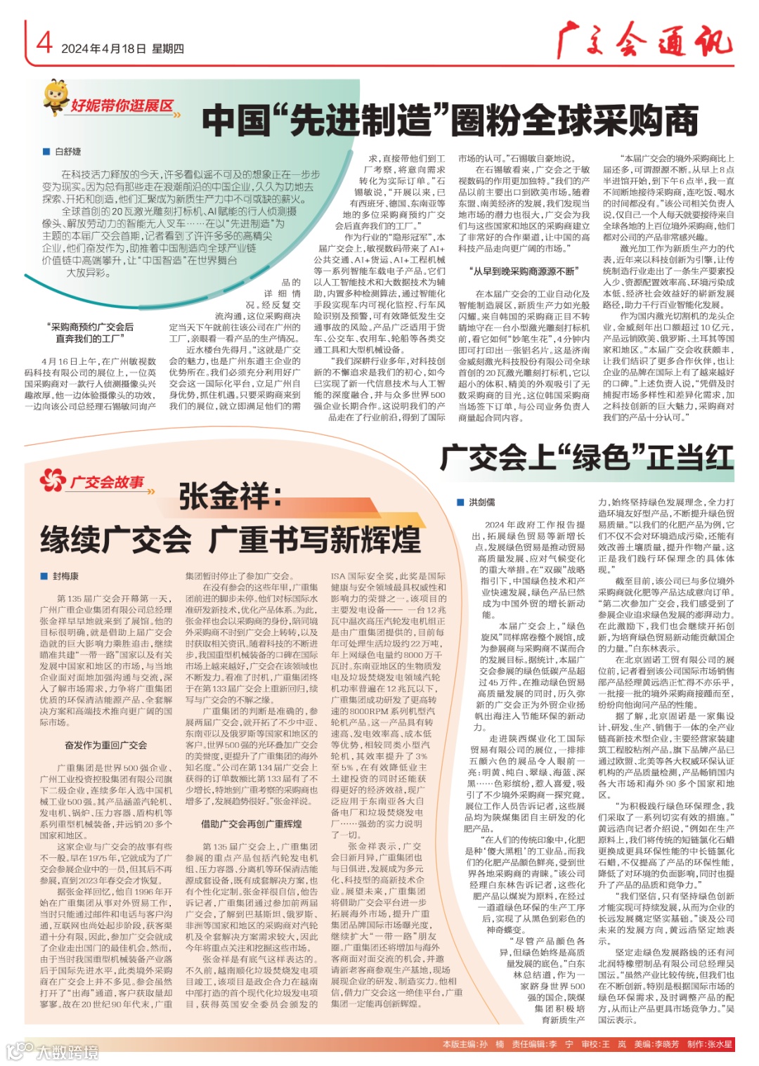 4月19日,第135届广交会第一期落下帷幕,同时也标志着广重集团为期5天的参展之旅圆满收官。在这场国际贸易盛会上,广重集团带着环保清洁能源装备和饱满热情亮相动力、电力设备展区,吸引了诸多境外采购商的关注,洽谈热烈,收获满满!此外,广重集团总经理张金祥作为一名“老广交”,其多年的参展经历在本届春交会上得到媒体的关注和报道。