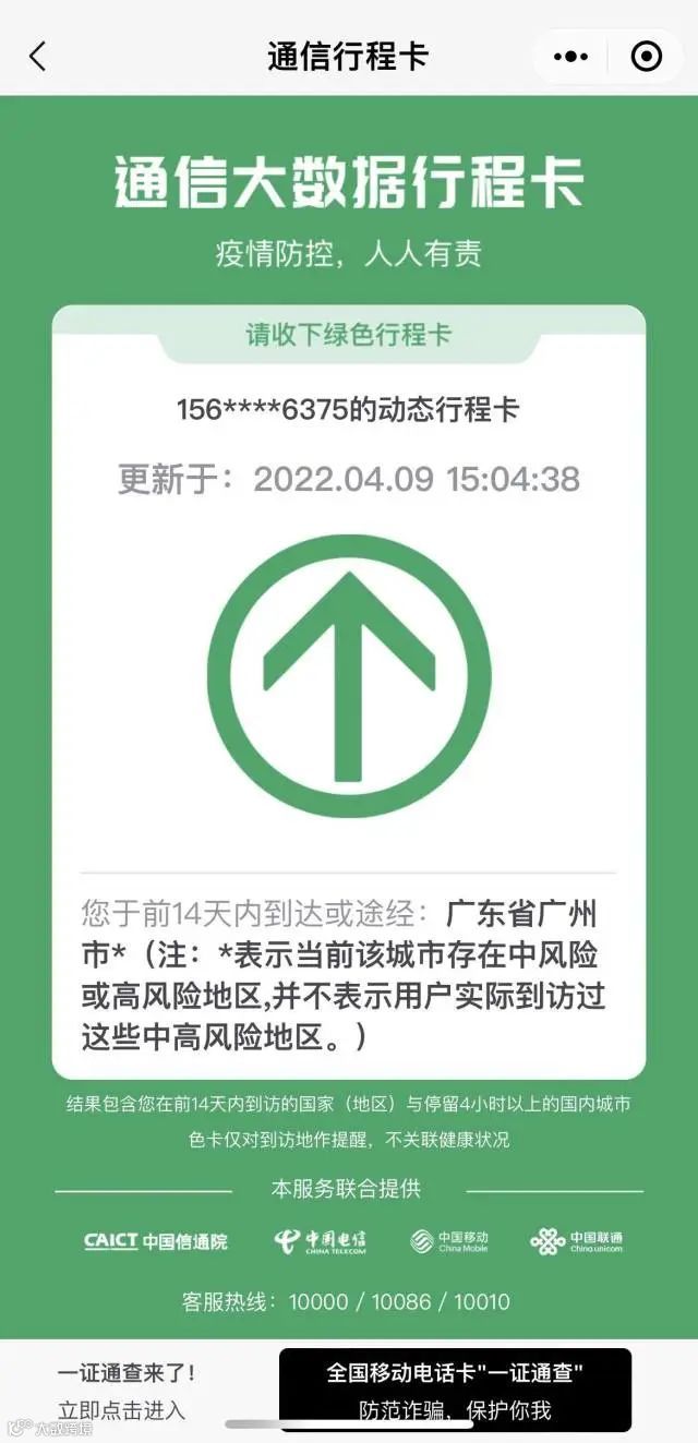 记者从广州市政务服务数据管理局了解到,“通信大数据行程卡”,也是广大市民所熟知的“行程码”,是由工信部指导,中国信通院、中国电信、中国移动、中国联通共同推出的公益性的行程查询服务,可以免费为用户提供本人过往14天内到访过的国家(地区)和国内城市证明。