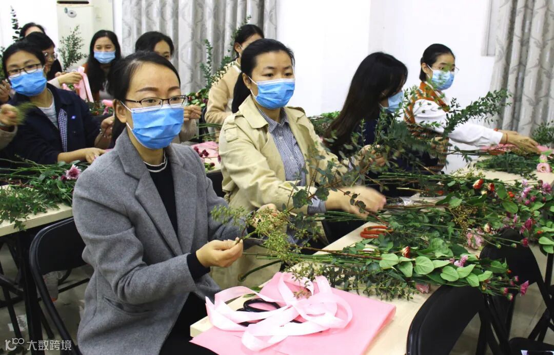 经过1个多小时的培训和实践,一枝枝鲜花被重新赋予了灵魂和生命,变成一束束精美的捧花展现在大家眼前。看着通过亲手制作的插花作品,大家兴奋不已。