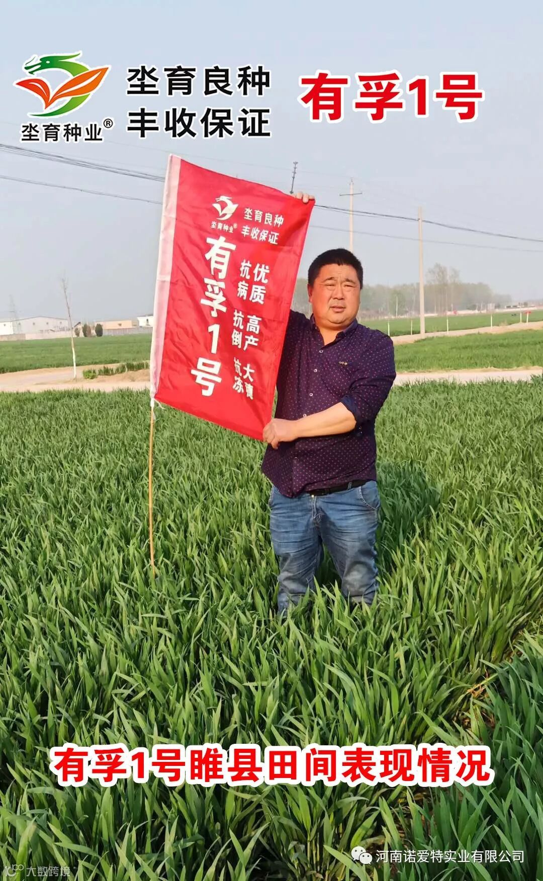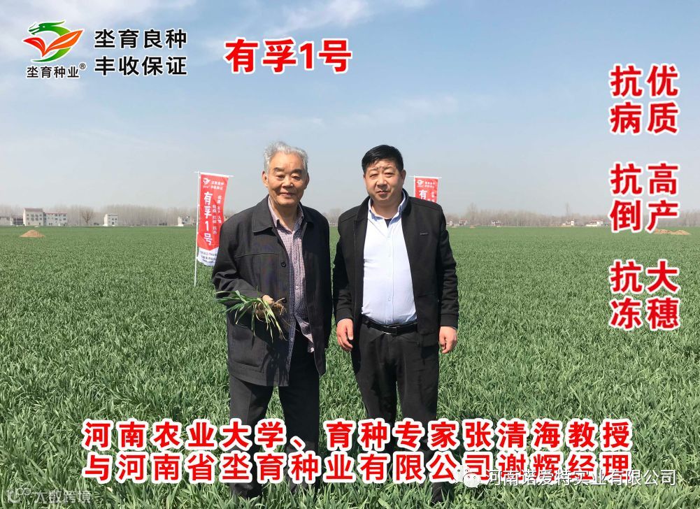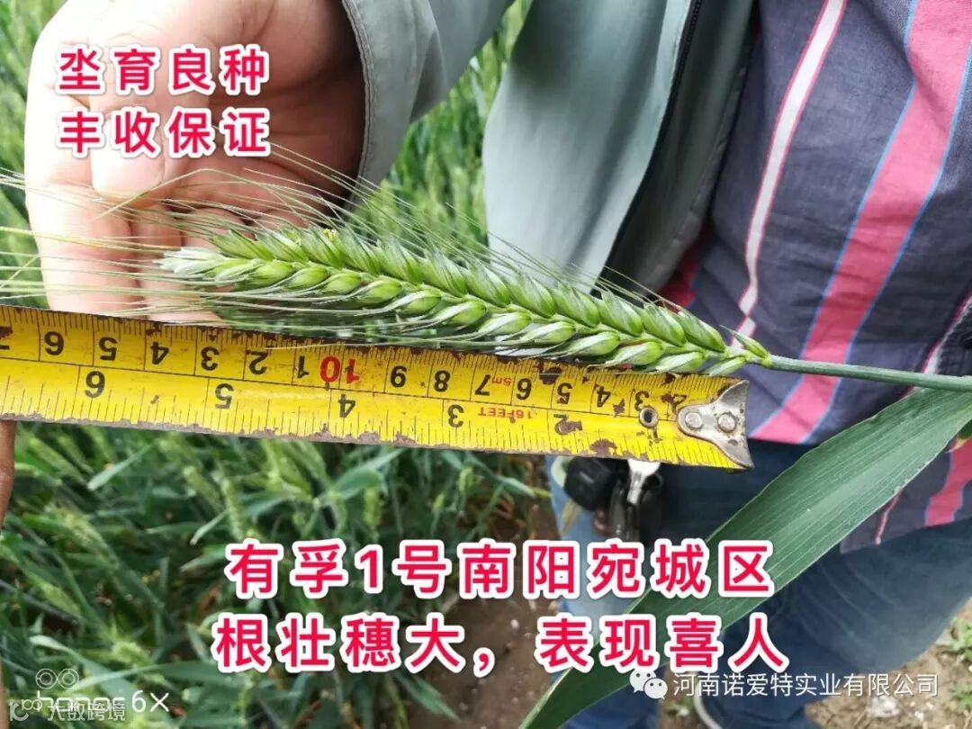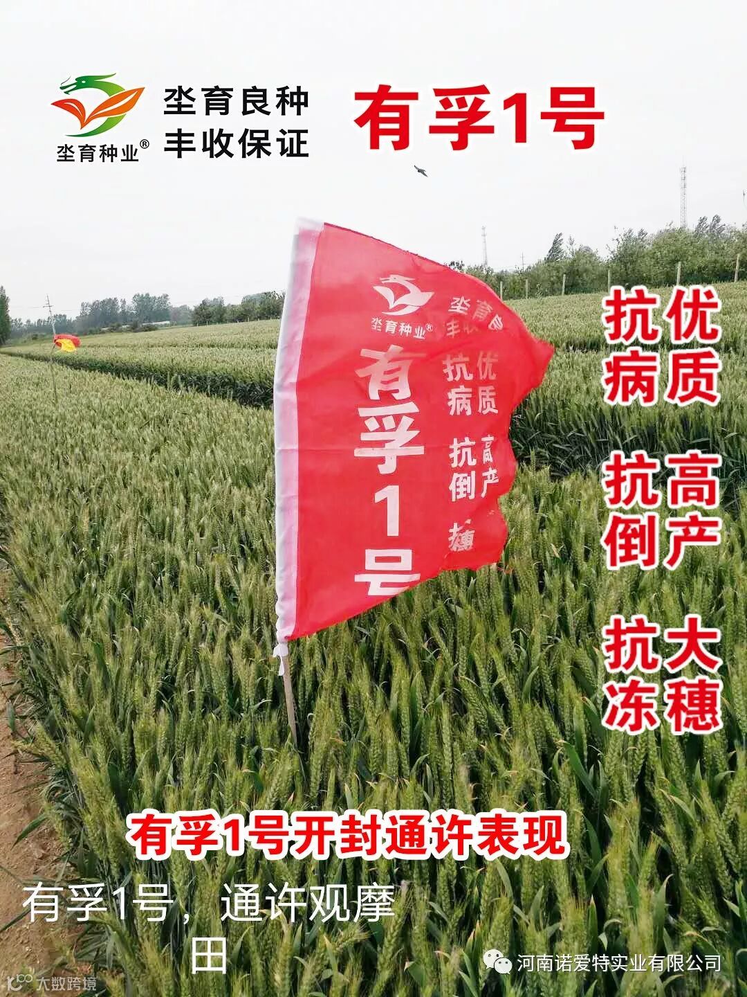 河南省坔育种业有限公司繁育的优质小麦【有孚1号】,通过验证,已明显优越于其它品种,它首先打破了“优质不高产,高产不优质”的传统说法,抗病害、抗冻害能力超强,目前是我国同时具备“优质、高产、大穗、抗病、抗倒、抗冻”六大特点的唯一品种。5月19号相聚河南太康基地,届时将有农业大学育种专家张清海教授现场讲解麦种优势及市场方向,太康基地李华峰书记分享小麦高产培育办法,欢迎各界朋友前来观摩!