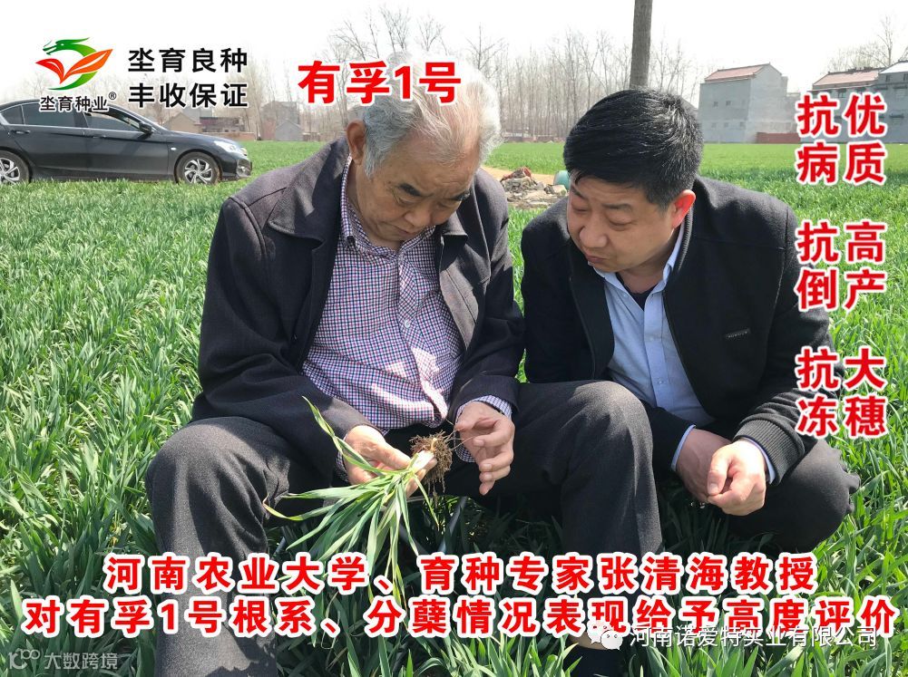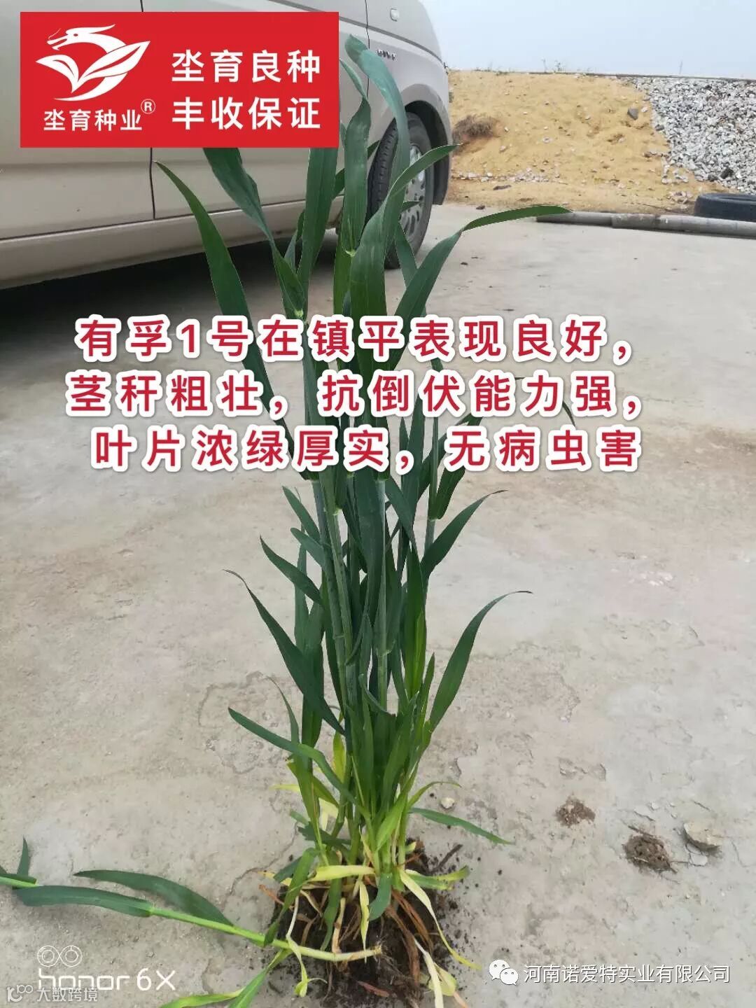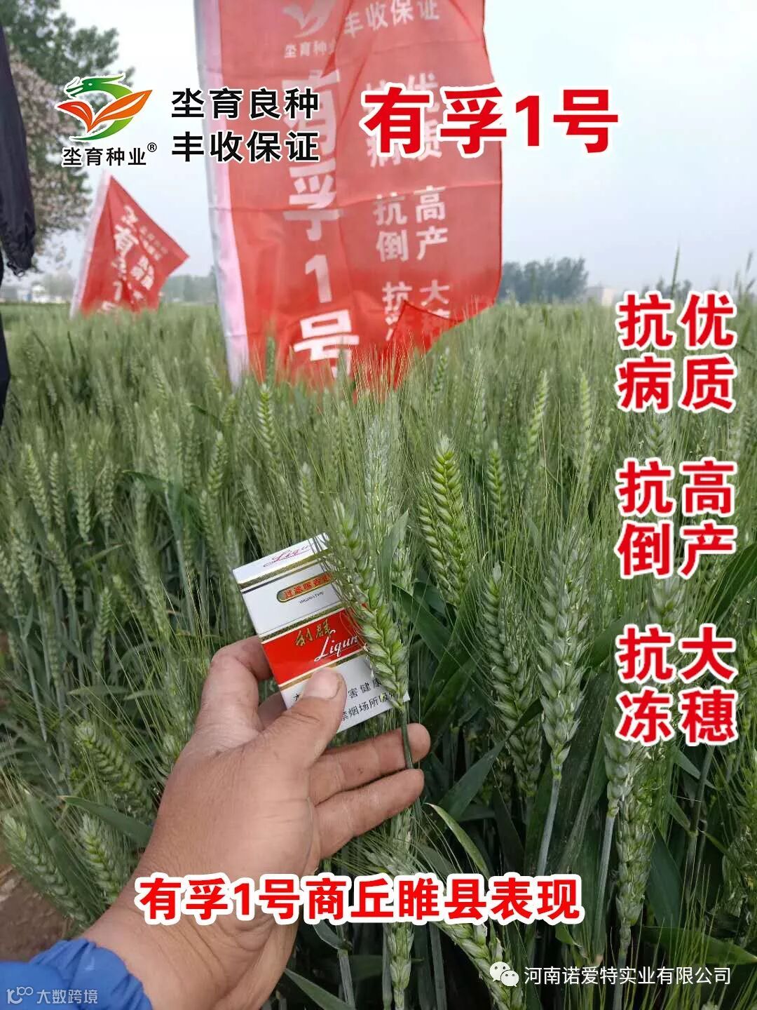 河南省坔育种业有限公司繁育的优质小麦【有孚1号】,通过验证,已明显优越于其它品种,它首先打破了“优质不高产,高产不优质”的传统说法,抗病害、抗冻害能力超强,目前是我国同时具备“优质、高产、大穗、抗病、抗倒、抗冻”六大特点的唯一品种。5月19号相聚河南太康基地,届时将有农业大学育种专家张清海教授现场讲解麦种优势及市场方向,太康基地李华峰书记分享小麦高产培育办法,欢迎各界朋友前来观摩!