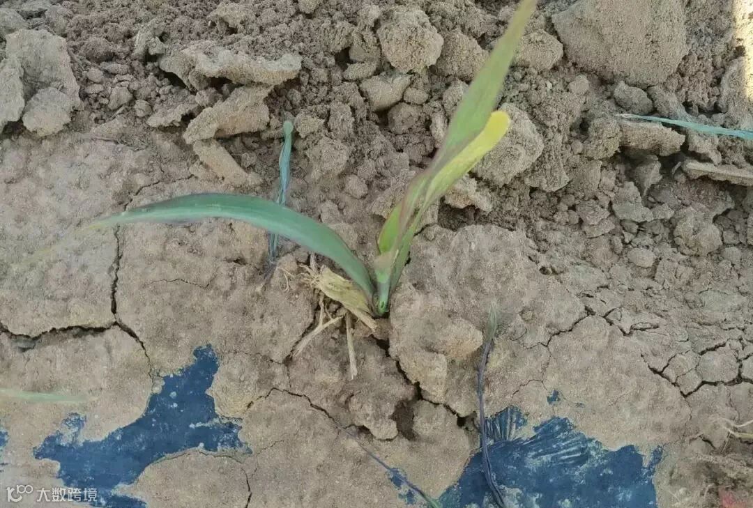 (2)盐碱:土壤属盐碱地,个别对盐碱敏感的品种出现生长缓慢,在生长过程中表现紫苗。当然严重者导致死苗。生长缓慢的原因是根系不发达或没有生出次生根。