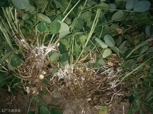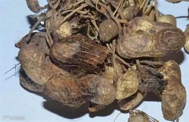 第四种,病害引起的果实腐烂,常见的病害有花生白绢病、花生根腐病、花生茎腐病等!白绢病在前期就造成大的危害,出现许多白薄,染病植株根系长势非常弱,随着养分供应不足以及病害的加重,就会出现烂果;根腐病在整个生长期都会发生,在后期直接造成果实腐烂;茎腐病,是造成植株早衰死亡重要原因之一,后期发病植株下部果实基本全部坏死!