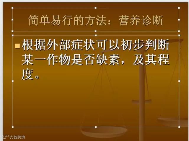 植物缺钾症状:叶尖或叶缘发黄,变褐、焦枯似灼烧状,叶片上出现褐色斑点或斑块,但主脉附近仍为绿色。
