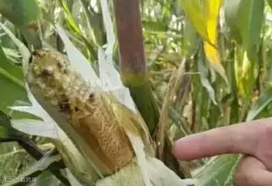 生育后期养分、水份不足,顶部花丝吐出晚、雌花退化、柱头变态、花丝叠压,也会形成缺粒。