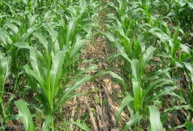 一些玉米品种的个别植株在大喇叭口期、抽雄前,上部叶片卷曲缠绕呈牛尾状,但不具有顶腐病的其他典型症状,特别是在植株茎秆上,无腐烂斑块和害虫蛀道状裂口,苗期生长并无异常。