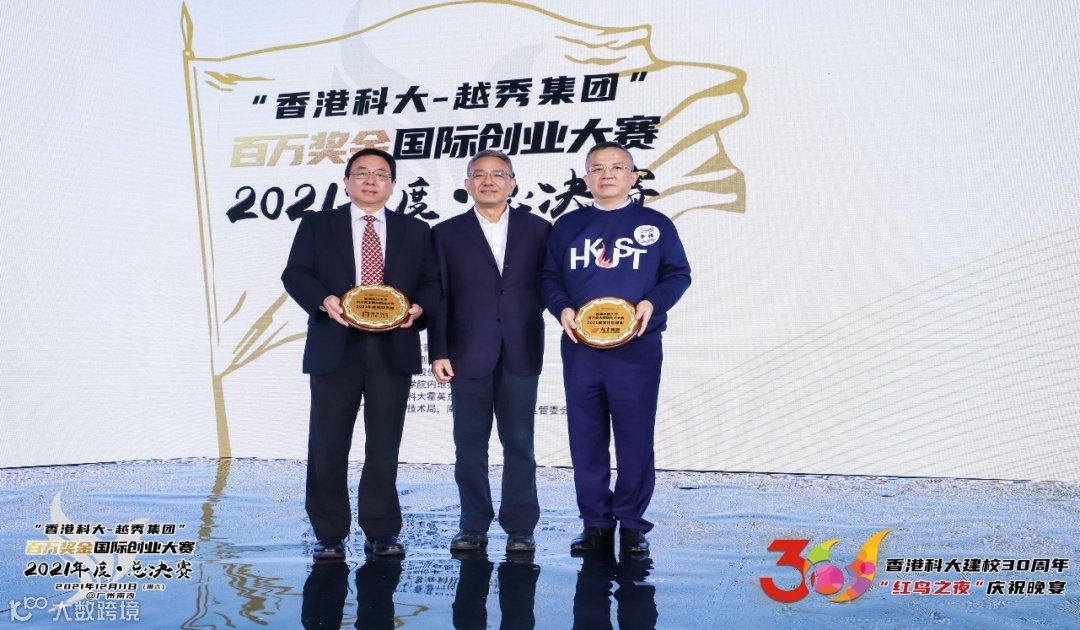 2021年12月11日,“香港科大-越秀集团”百万奖金国际创业大赛·2021年度总决赛在广州南沙顺利举行。集团作为大赛的首席合作伙伴,已连续3届冠名大赛,并为大赛提供全方位支持。总决赛当日,还举行了香港科大科创产业联盟成立仪式和香港科大30周年庆祝晚宴。广州市科学技术局党组书记、副局长弓鸿午先生、南沙区常务副区长魏敏先生、南沙区政协副主席、商务局局长谢晓晖先生、香港科技大学(广州)校长倪明选、越秀集团首席资本运营官李锋等出席了活动。