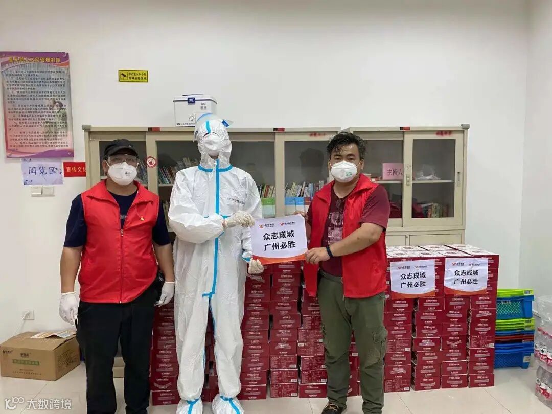 继6月9日向本轮疫情最严重的荔湾区各街道捐赠一批食品物资之后,6月10日-11日,越秀集团又冒雨向广州市卫健委派驻封闭封控区的2000余名医护人员和荔湾区6家医院、19个社区服务中心共约3500名一线医护人员,送去100箱趣香粽子、1000箱皇上皇腊味煲仔自热饭、10000箱风行牛奶、3000盒趣香饼干,以及刚从沈阳空运来的465箱辉山鲜奶茶,慰问连日来奋战在抗疫一线的我市医护人员,并向他们送去节日的问候。