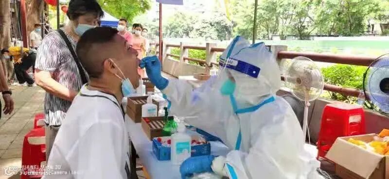 5月末的广州已是酷暑,时而烈日当空,时而骤雨急降,恶劣的天气无疑大大升级了防疫工作的难度。面对困难,身处一线的越秀人始终冲锋在前,有的负责维护现场秩序、有的负责引导检测登记、有的负责记录信息,在各自岗位上恪尽职守,坚定地与医护人员、与广大广州市民站在一起,勠力同心,共筑击退疫情的坚实屏障。