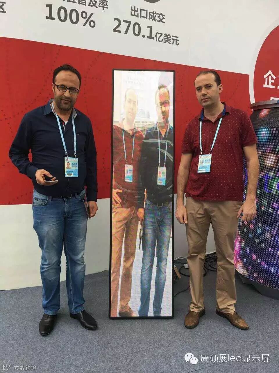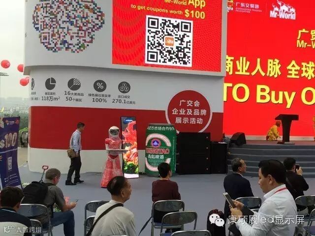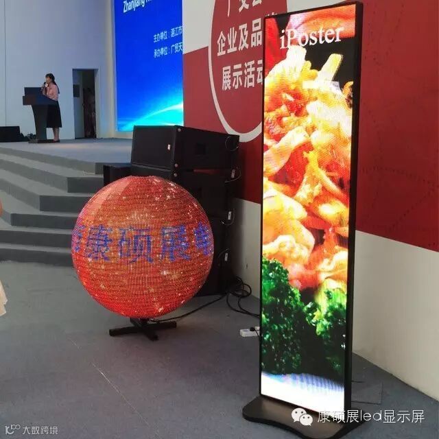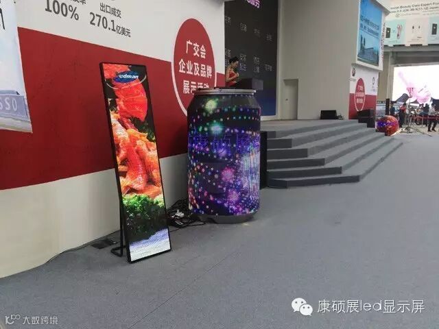 作为广交会的合作伙伴,康硕展电子应主办方盛情邀请,展出了多款创意LED显示屏产品。包括1米直径P10规格LED球形屏,1米直径1.7米高P6规格LED易拉罐以及iPoster云屏等产品。