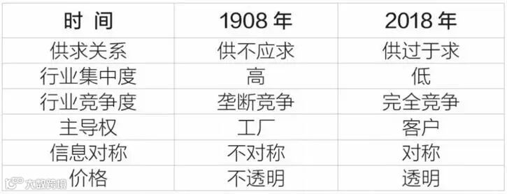 今天的后市场零部件生产企业与福特汽车身处不同时代,以下比对,能够引起我们的思考: