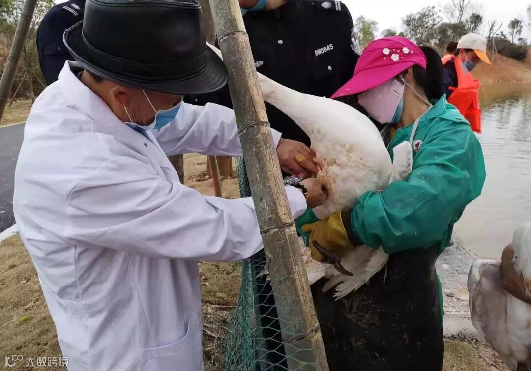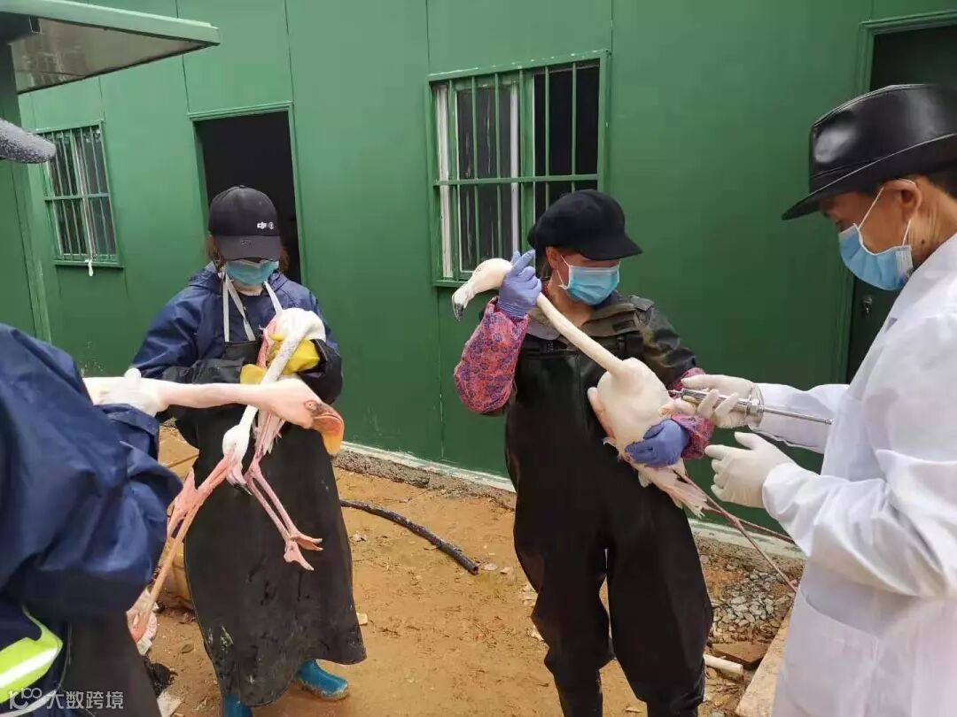▲为园区内动物注射预防禽流感疫苗