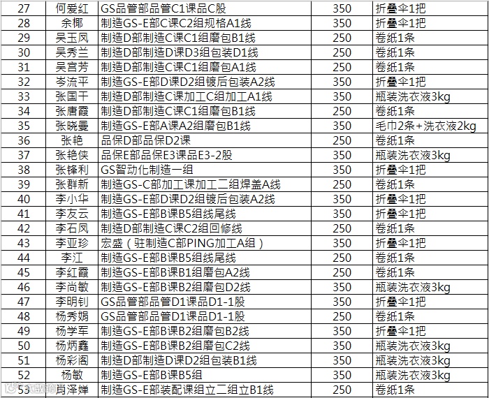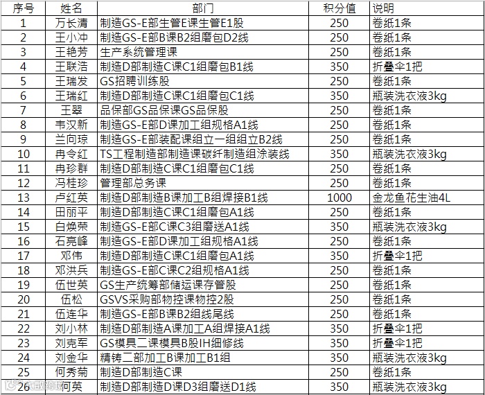 微信公众号积分兑换名单