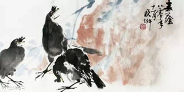 两只乌鸦在树上对骂起来,它们越骂越凶,越吵越激动,最后一只乌鸦随手捡起一样东西向另一只乌鸦打去。
