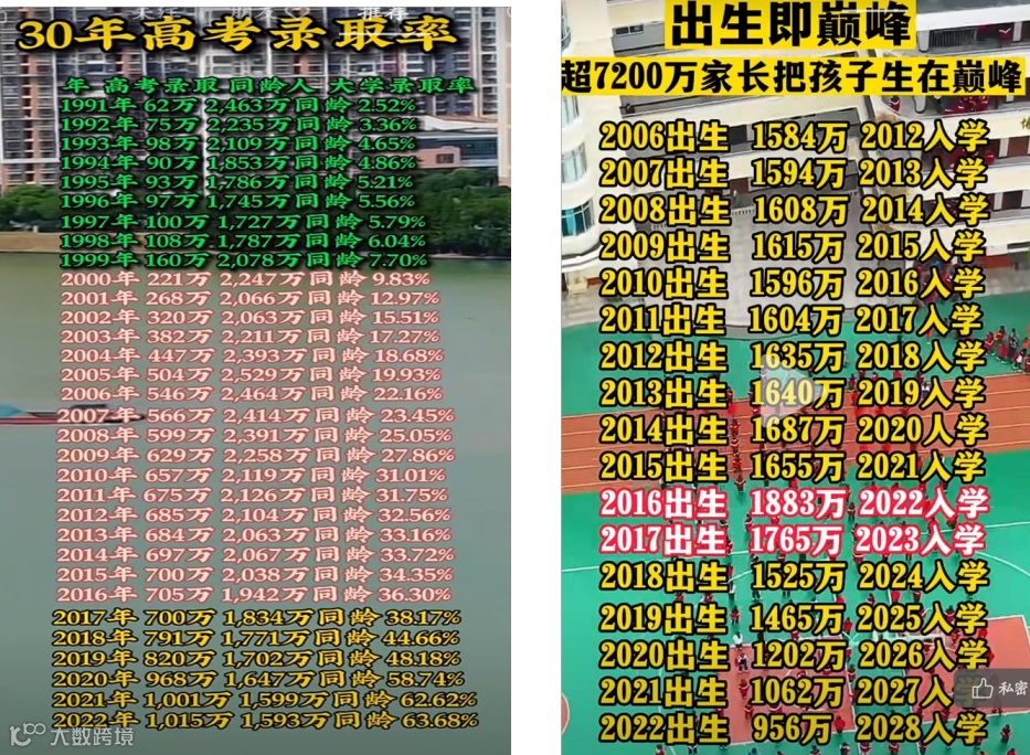 30年高考录取率&小孩出生日期与入学年份。