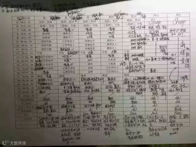 浙大一位学霸因为一张密密麻麻的作息表走红。