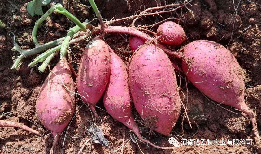 甘薯一生对氮、磷、钾三要素的需求,以钾最多,氮次之,磷较少,据研究每产1000kg鲜薯,需氮4.9-5.0kg、磷1.3-2.0kg、钾10.5-12.0kg。氮、磷、钾之比约为1:0.3:2.1。甘薯需要氮、磷、钾三要素的总的趋势是前、中期吸收迅速,后期缓慢。对氮素的吸收于生长的前、中期速度快,需量大,主要用于茎叶生长,茎叶生产盛期对氮素的吸收利用达到高峰,后期茎叶衰退,薯块迅速膨大,对氮素吸收速度变慢,需量减少;对磷素的吸收利用,随着茎叶的生长,吸收量逐渐增大,到薯块膨大期吸收利用量达到高峰;对钾素的吸收利用,从开始生长到收获较氮、磷都高,随着叶蔓的生长,吸收钾量逐渐增大,薯块快速膨大期特别需要吸收大量的钾素。