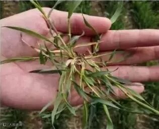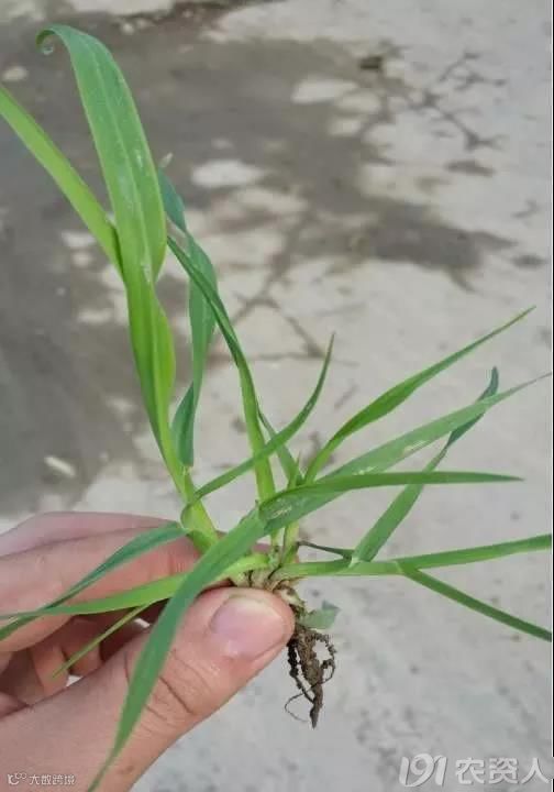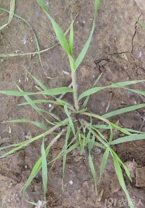 2、 叶片颜色淡于小麦,且叶片有逆时针扭曲现象,小麦则是平展的叶片。
