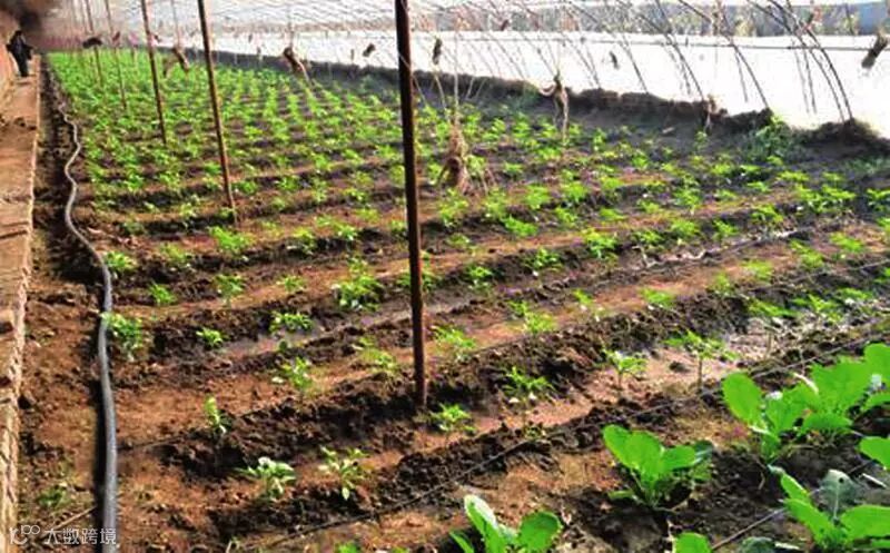 4)覆盖地膜与小块棚:高垄栽培的,可在高垄上覆盖一层地膜,可提高2-3℃;平畦栽培的,可用小拱棚提高地温。