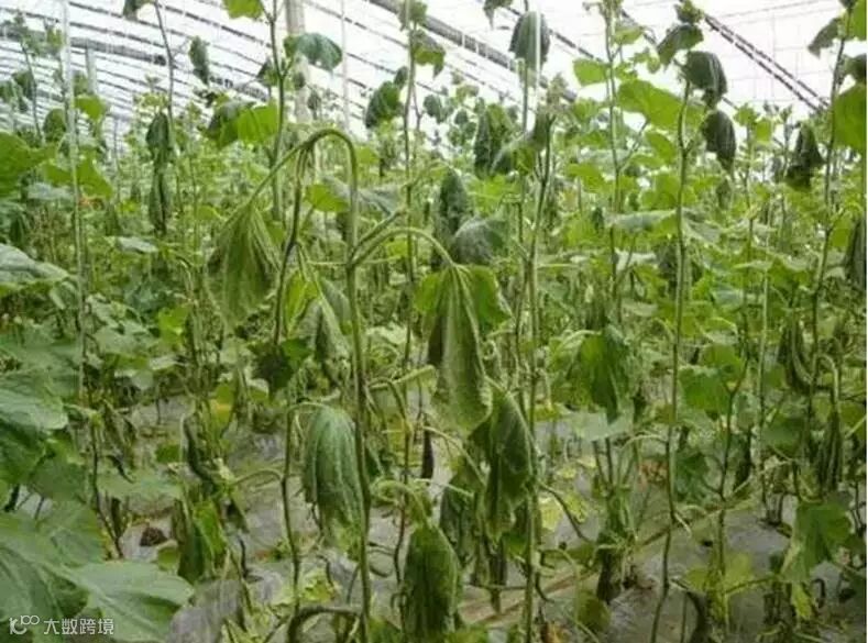 骤然低温及缓慢低温均可以导致萎蔫。骤然低温引起的萎蔫多是发生在棚温较高时突然浇了冷水后,这时候植株蒸腾量较大,浇入冷水使其根系活力下降,根部水分吸收受阻。受害严重的植株会因水分严重失衡而死亡。