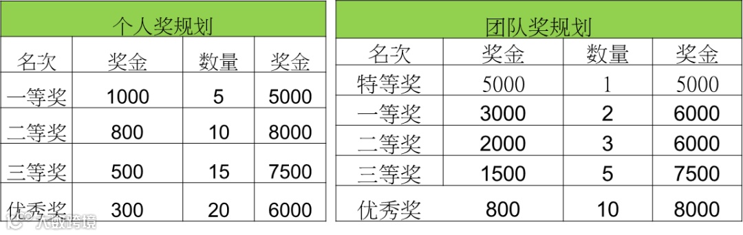 1、个人赛:一等奖5名,二等奖10名,三等奖15名,优秀奖 20名,合计50名;