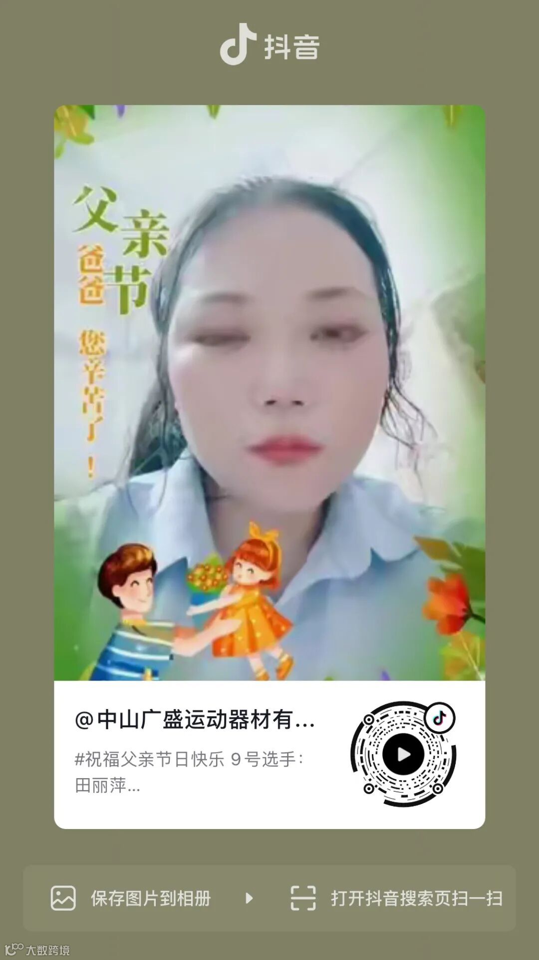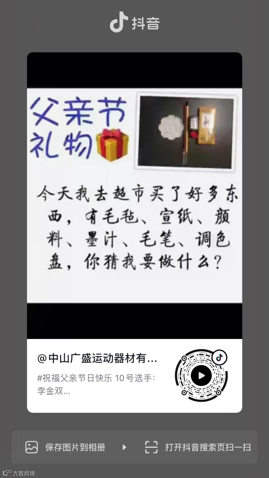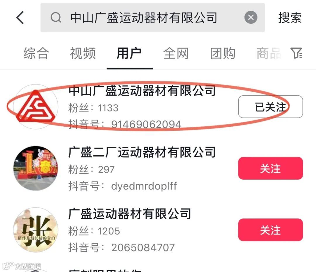 打开抖音,输入“中山广盛运动器材有限公司”查找