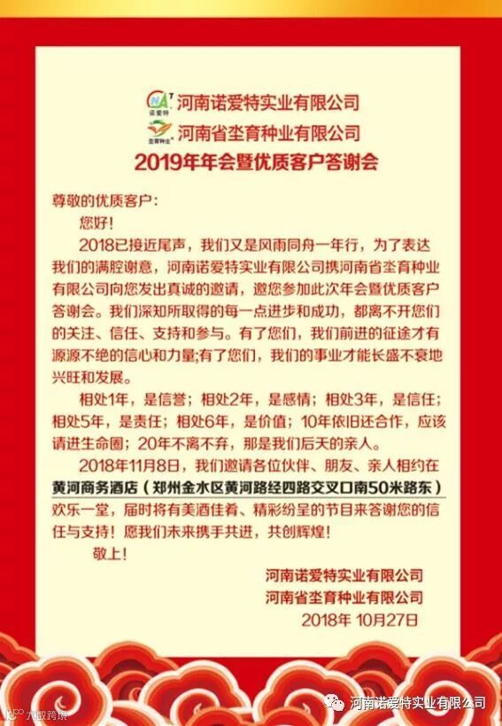 此次会议我们得到了河南省农业厅、河南省科技厅、河南省粮食购销有限公司、河南省农业大学、河南大河报、河南省科技报等单位的大力支持,我们将以品种齐全的产品及各种共赢政策来回报各位经理,期盼各位的到来!