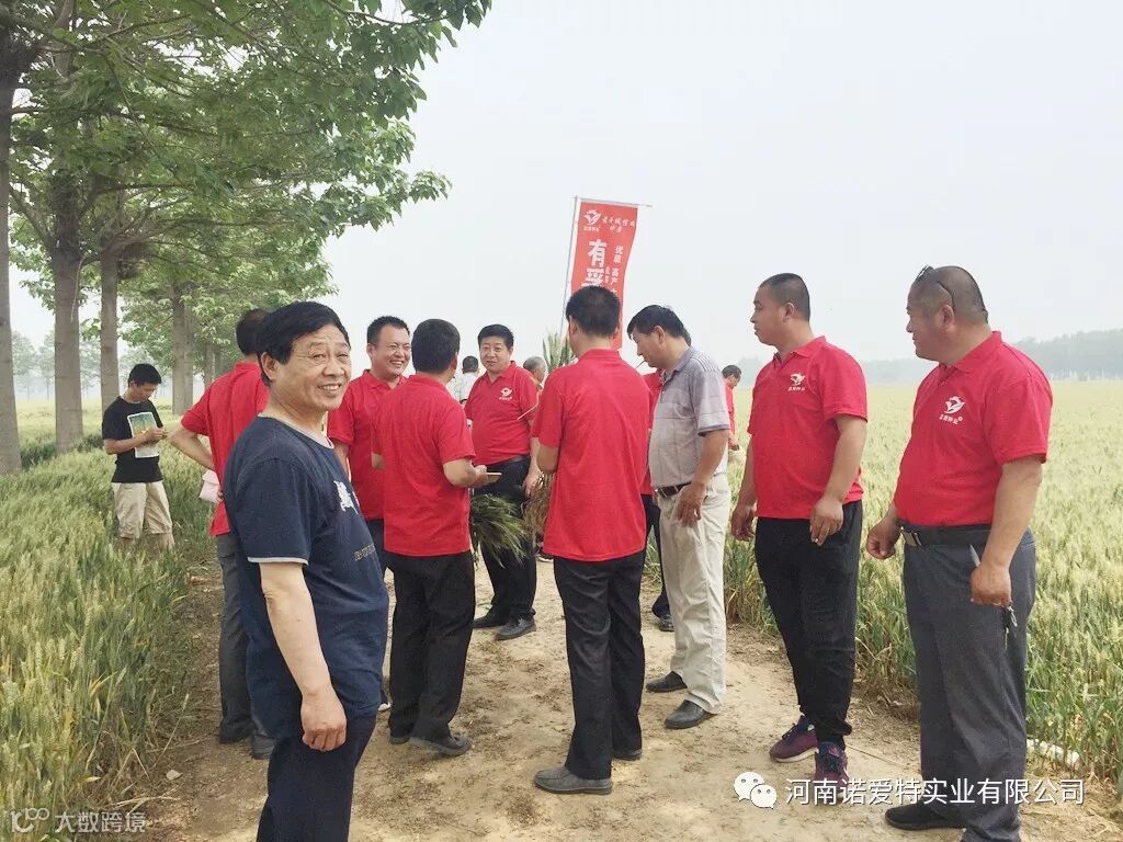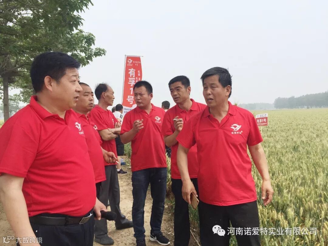 河南代理商马总带领30人团队前来参加观摩会,他看到有孚1号田间表现,非常开心。他说:“今年大灾之年,很多地方麦子都长的不好,到这田里一看,这个品种的表现真是不错,基本没病,穗子还大,杆子粗,粒子饱,在今年的表现非常突出,作为一个经销商,遇到一个好品种不容易,我和我的团队对这个产品很有信心。”