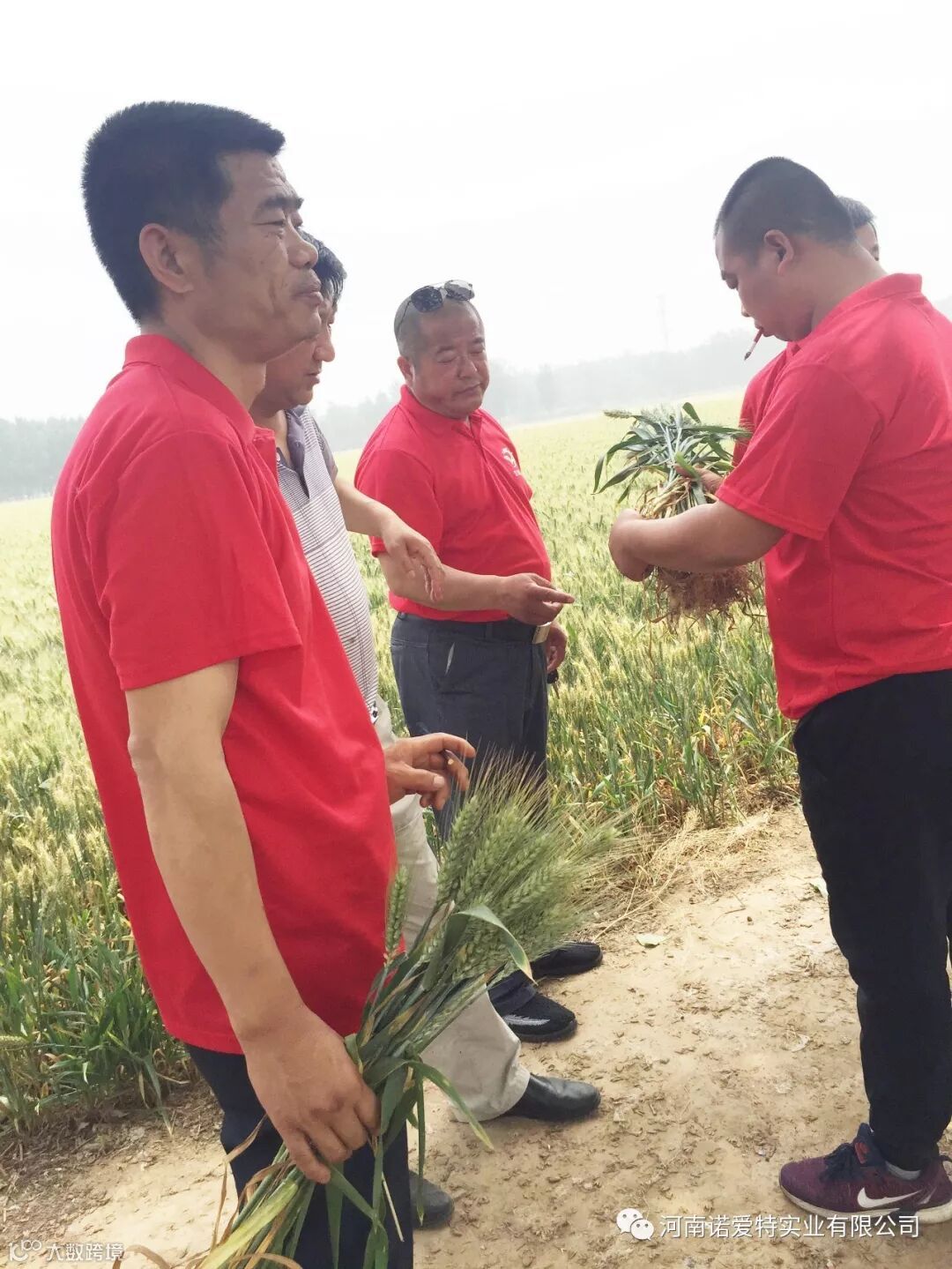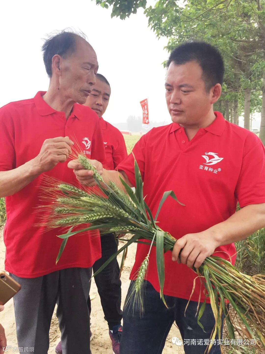 看到有孚1号,矮杆大穗,没有病害,又没有冻害,来自各地的经销商们纷纷拍照,录视频,采集整束的麦子样品。
