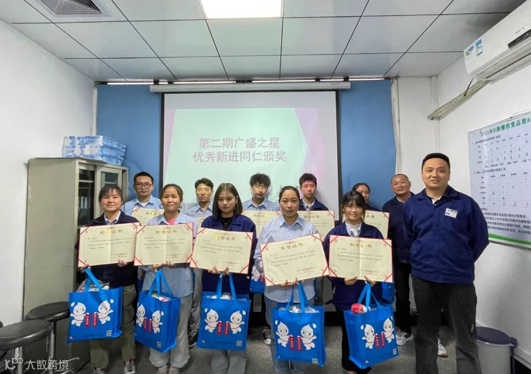 为进一步激发员工工作热情,充分调动员工工作积极性和主动性,2021年度第二期“广盛之星”优秀新进同仁评比启动了,根据投票结果,共15名同仁被评为“闪耀之星”,83名同仁被评为“进步之星”。各单位主管共同见证和分享属于优秀新人的喜悦和荣誉。