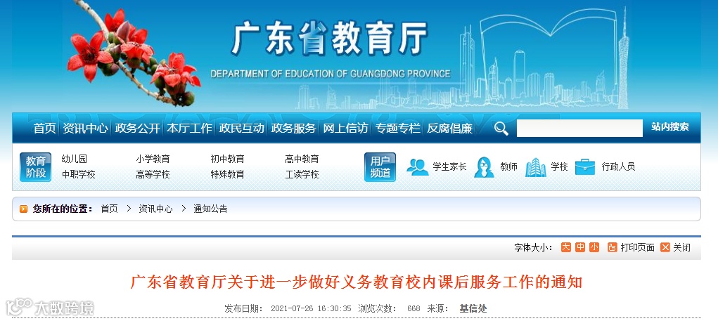 《通知》明确,从今年秋季学期开始,广东义务教育各级各类学校要做到课后服务两个“全覆盖”,即义务教育学校全覆盖、有需求的学生全覆盖。