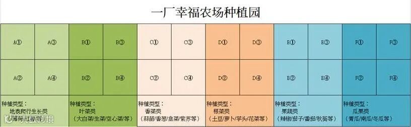 1)各地块种植类型依上图规划,农场委员会依认领单位意见统一采购种子或菜苗;