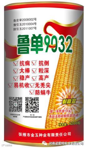 1、熟期适中,适应性广。夏播96天,凡种植郑单958、先玉335玉米品种的地方均可种植。2、黄粒、红轴、粒深,出籽率高达91.6%。产量高。3、抗倒,茎秆坚韧、实杆,根多根深;株高255cm左右,穗位高95cm左右,穗长24-26cm。4、高抗病,高抗虫,高抗大小斑病,粗缩病、丝黑穗病等多种病害;高抗玉米螟、苞叶紧。5、结实性好,不秃尖,棒子均匀。6、马齿型,穗行数18-20行,容重高、品质好,比其他商品玉米多卖钱。7、棒子脱水快、易机收。旱地水地均可机收。8、高产、稳产。一般亩产1500-1700斤,高产可达1800斤,具有超吨产量潜力。