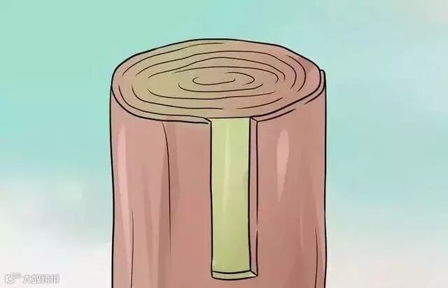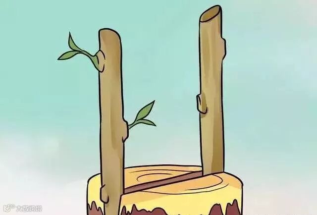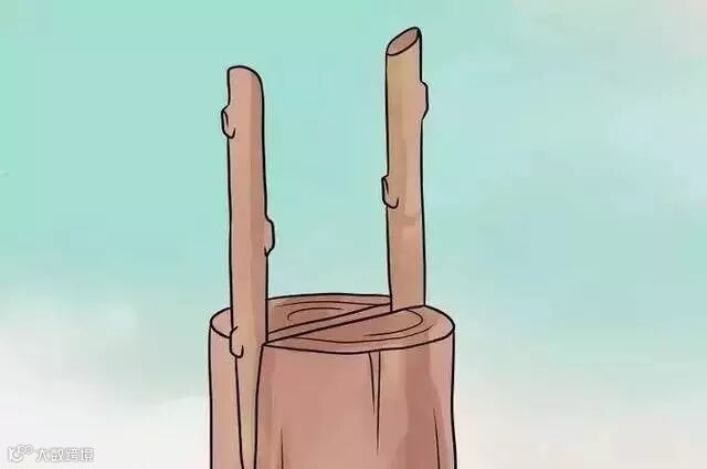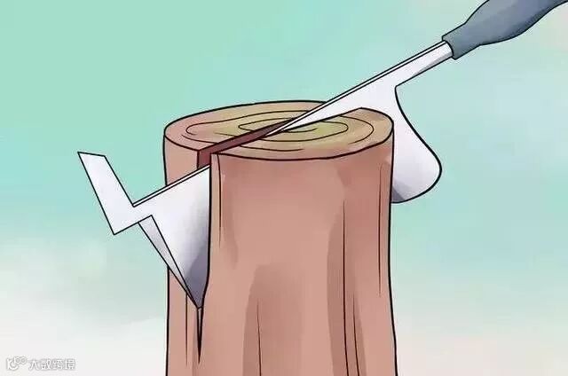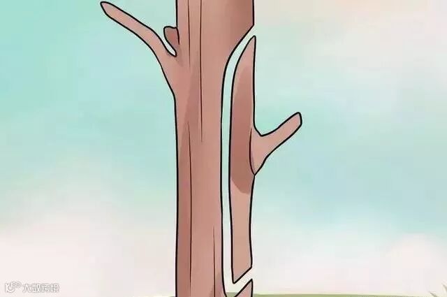 3、砍掉砧木。使用一个嫁接刀或斧头从中心往下直直地切开15厘米。