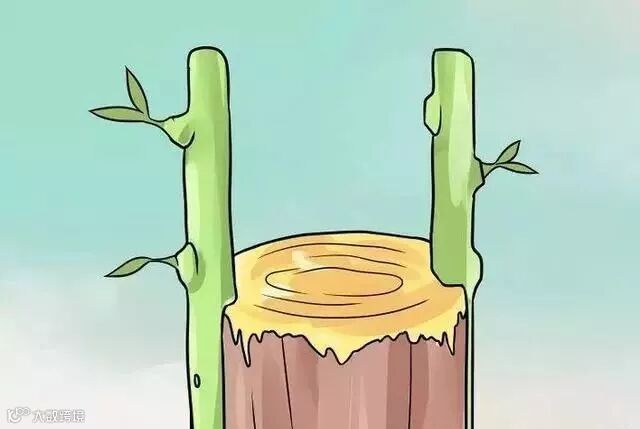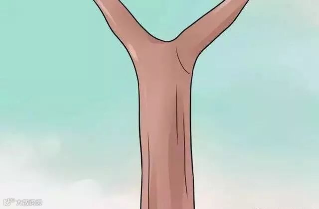2、切除砧木。选择下面的一个点,这里的分枝在15厘米内是很直、无瑕疵的,然后做一个干净的垂直切割,移开剩下的分枝。小心不要弄裂树枝和树皮。一定要留一个附近发芽的树枝,养分才能往树上流动。