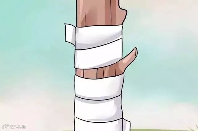 5、固定接穗。用有弹性的橡胶材料围绕着砧木缠绕起来,把芽控制在适当的位置。聚乙烯胶粘带是最好的。小心不要挤压或者盖住芽。