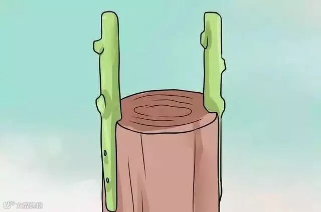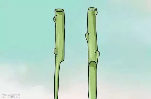 1、选择你要嫁接的植物品种和砧木。为了能够成功嫁接,你必须从一棵健康无病的植物品种(来源树)和一棵合适的生长树(砧木)上切下一块接穗(小小的一片,为了嫁接使用)。枝接法只能用于相同直径的砧木和接穗,直径必须是在0.6-1.3厘米之间。嫁接必须在严寒威胁过去之后才能开始,但是也要在树干的树皮开始滑动之前(容易脱落)进行。接穗必须处在休眠期(未发芽),并且应该是0.3米长的一个小枝,上面有三到五个芽。