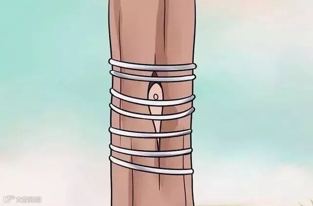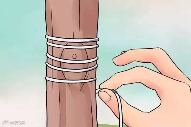 6、拆下绑着的带子。大约一个月时间,你裹在砧木上的橡胶就可能会松散、脱落。如果没有,你就自己轻轻地拆开,这样这一块地方就不会被收束得太紧。