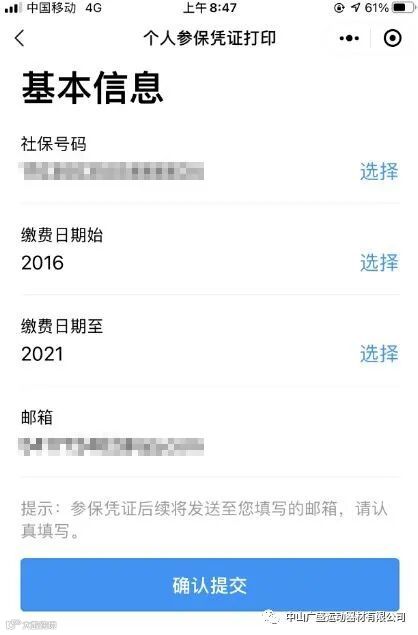 3.按要求填写缴费信息,确认提交